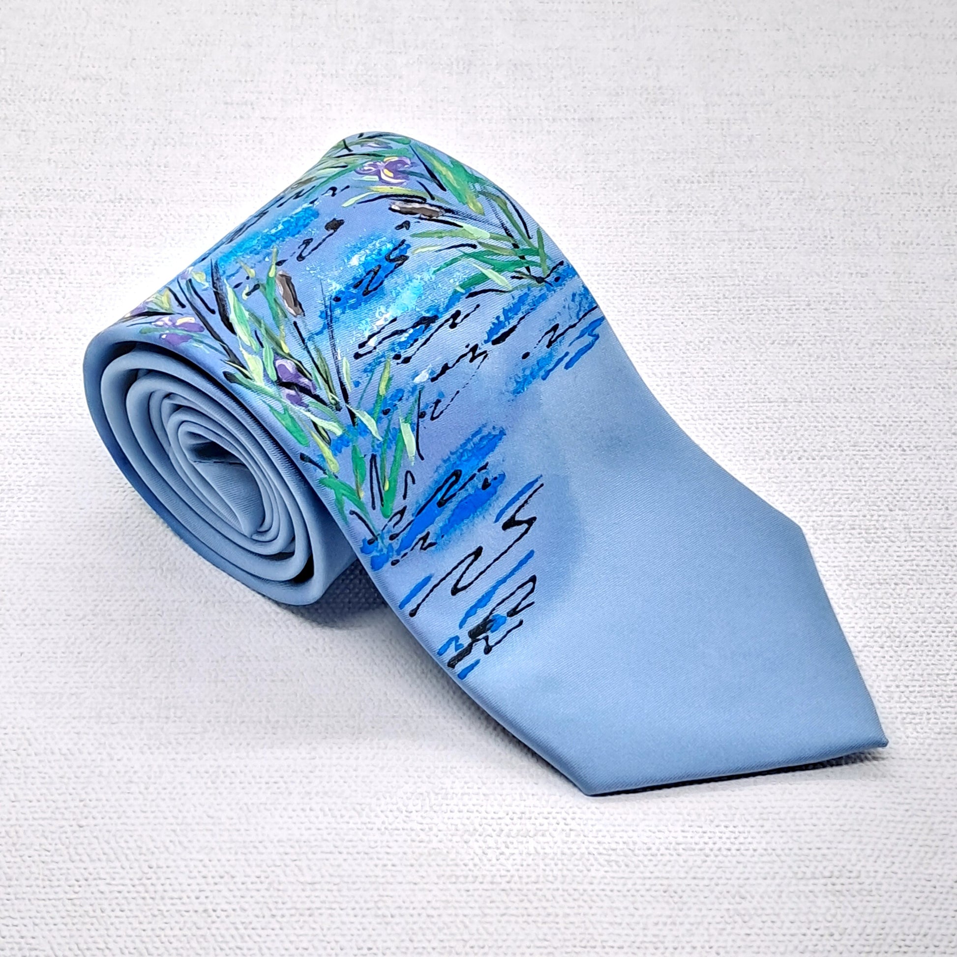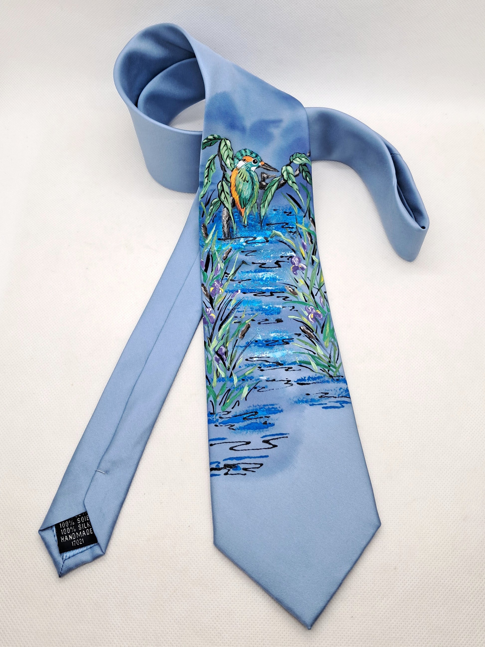 All of our ties are painted individually by hand in our studio. All ties are signed and have our label on the back.